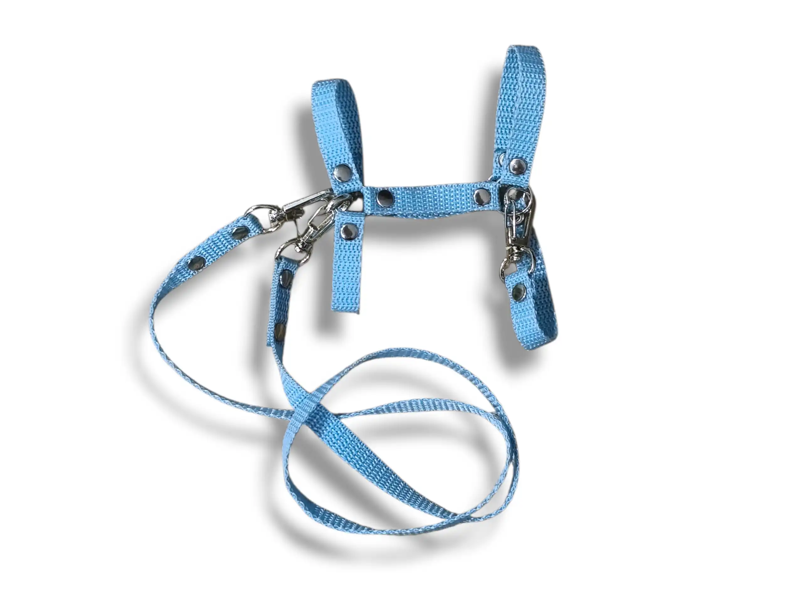 14. kantar z wodzami a5 kolor błękitny. wykonany z taśmy nośnej o szerokości 1cmKantar z wodzami A5 błękitny